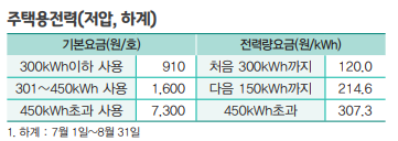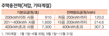 근데 요금표를 보면 기타계절은 400kWh, 하계는 450kWh를 초과하면