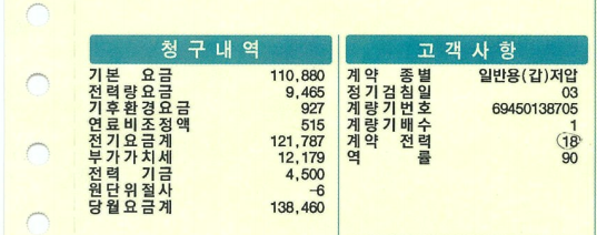 아래 고지서의 고객사항을 보면 계약종별은 '일반용(갑)저압'