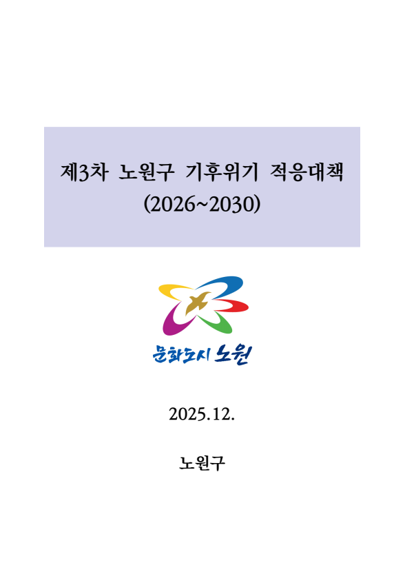 노원구는 「기후위기 대응을 위한 탄소중립·녹색성장 기본법」 제40조에 따라 관할 구역의 기후위기 적응에 관한 대책을 5년마다 수립·시행하고 있습니다.